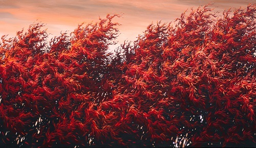 전북예술회관에 자리하고 있는 진창윤 작가의 ‘평화로 하나로’는 전시장을 찾은 관람객들의 시선을 붙잡는다. 전봉준, 김구, 윤봉길, 안중근 등 조국의 해방과 자유를 위해 투쟁했던 인물들을 그림으로 접할 수 있다. 이기홍 작가의 ‘바람 붉은 대숲’은 붉은 색감과 질감을 살려내 생명력이 넘친다. 전시된 그림을 보던 관람객들은 그림을 한참 응시하더니 휴대폰 카메라로 찍어가기도 한다.