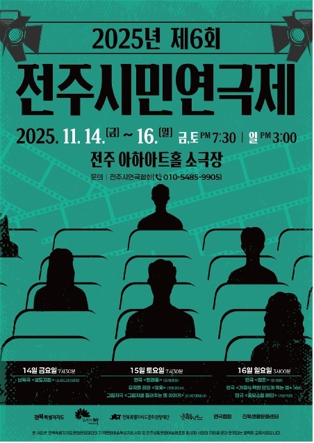 전북특별자치도 전주시민들의 생활문화예술축제인 ‘제6회 전주시민연극제’가 14일부터 16일까지 3일간 전주 아하아트홀에서 열린다.