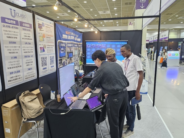 엠에이치소프트가 TRI와 미화 8만 달러 규모의 ‘공정 관제 및 원격제어 서비스’ 공급 계약을 체결했다.사진은 해외바이어들과 상담모습./엠에이치소프트 제공.