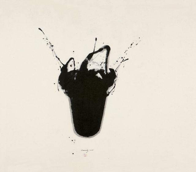 수묵화란 무엇인가? 먹으로 물을 운용해 기운생동을 담아내는 것이리라. 이 작품은 물을 주제로 그림에서 가장 기본인 획을 탐구한 결과물이다. 형상을 덜어내고, 비운 후에 남은 획, 광목 위에서 일획으로 표출한 행위 흔적이다. 물이 흐르다 위기를 만나면 자기 몸을 던져 물꽃을 피우는 절정의 순간을 사의적으로 표현한 거다.