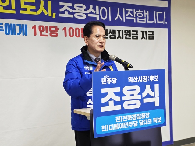 조용식 익산시장 예비후보가 익산시민 1인당 100만 원 민생지원금 지급 공약을 반드시 실행하겠다고 재차 약속했다.