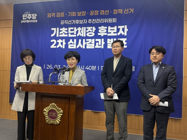 더불어민주당 전북특별자치도당 공직선거후보자추천관리위원회(위원장 이재운))가 기초단체장 후보자 2차 심사 결과를 발표하며 전북지역 민주당 기초단체장 경선 국면이 본격화됐다.