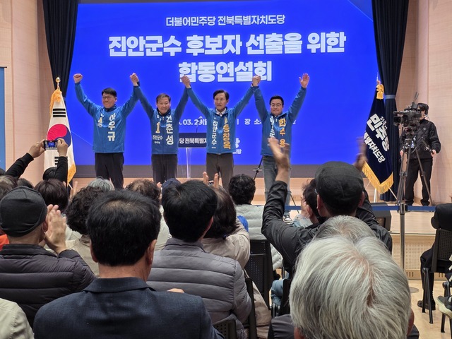 민주당 전북특별자치도당이 주관한 진안군수 예비후보 합동연설회가 29일 오후 진안군청소년수련관에서 열렸다. 연설은 순서추첨 결과에 따라 한수용, 동창옥, 전춘성, 이우규 후보 순으로 진행됐다. 예비후보들은 약 150여 명의 당원 앞에서 각 10분간 공약과 비전을 제시했다. 현장에서는 후보별 정책과 군정 평가를 둘러싼 공방이 이어지며 분위기가 달아올랐다.