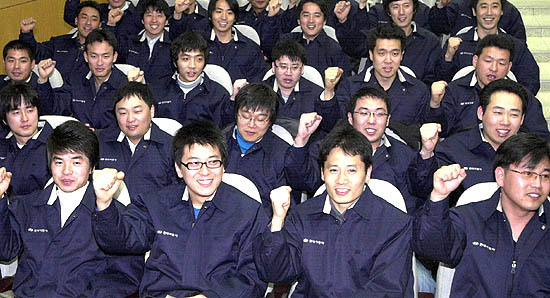 12일 오후 2시 30분 현대자동차 전주공장 본관 지하 1층 회의실. 얼굴 가득 웃음꽃이 피어난 신입사원 59명이 ‘현대맨’으로서 갖추어야 할 소양교육을 받고 있다.