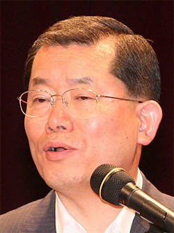 문 대표이사는 자신이 올해 초 참석했던 스위스 다보스포럼에서 세계 저명인사 2000명의 주된 관심사가 기후변화협약과 경제양극화 문제라고 설명한 후 "세계는 환경과 세계적 공동체의 인간다운 삶에 관심이 있는 데 우리만 아직도 개발 논리에서 벗어나지 못하고 있다"고 지적했다.