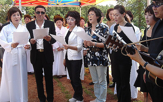 고향마을 교회 목사의 주도로 치러진 이날 추모예배는 고인을 위한 기도와 고인을 추모하는 플롯연주, 추모시 낭송, 묘비 제막식 등 기독교식으로 실시됐다.