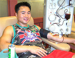 유씨가 첫 헌혈을 한 것은 고등학교 2학년 때. 적십자혈액원 앞을 지나다가 우연히 헌혈을 한 것이 인연이 돼 지금까지 격주마다 한 차례씩 성분헌혈을 해 오고 있다.