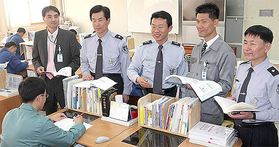 수용자들의 교육프로그램은 교육교화과 직원들의 몫이다. 10여명의 교육교화과 직원들 가운데 오원종·이중식 교감(교육총괄)을 비롯해 조만기 교위와 오희창 교회사보(검정고시담당), 김용작 교위(방통대과정담당), 이광진 교회사보(정보화교육담당) 등이 한자리에 모였다. 이들은 수용자들을 위한 중·고교 과정부터 대학 학사과정까지의 ‘원스톱프로그램’을 주도하고 있는 교정교화의 첨병인 셈이다. 직원들 가운데선 교원자격증 소지자가 5명으로, 이들이 직접 수용자 강의도 맡고 있다는 게 교도소측의 설명.