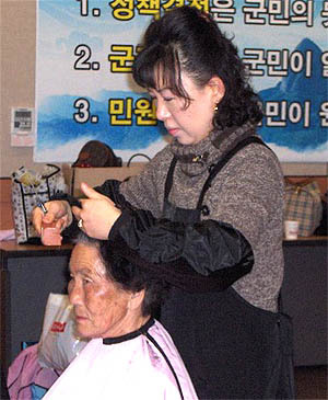 주기적으로 독거노인이나 장애인 등 기초생활수급자 세대를 직접 방문, 커트에서 염색, 파마에 이르기까지 유료 미용실과 다름없는 서비스를 제공하고 있다.