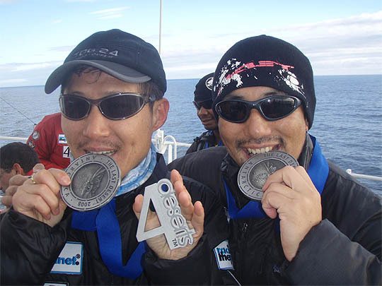지난 4일 남극 마라톤대회를 완주한 송경태의원(왼쪽)이 유지성씨와 함께 기뻐하고 있다. (desk@jjan.kr)