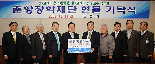 남원시는 전 고려대학교 농과대학장인 김성복 교수가 '후진 양성에 써달라'며 춘향장학재단에 1억원 상당의 부동산을 기탁했다고 22일 밝혔다.