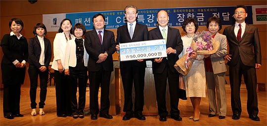 이 대학 패션학과 학생들에게 매학기 450만원의 장학금을 지급하고 있는 최회장은 지난해 11월 대학발전기금 1억원을 기탁하기도 했다.