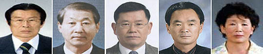 왼쪽부터 문화장 문태현씨, 체육장 김종수씨, 산업장 김인상씨, 봉사상 경석대씨, 효열장 정남선씨. (desk@jjan.kr)