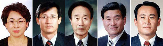 왼쪽부터 효열장 고우미, 산업근로장 김영보, 애향봉사장 박종림, 공익새마을장 이중하, 문화체육장 한천수. (desk@jjan.kr)