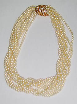 현숙씨가 이날 기증한 진주다이아목걸이는 진주 760개(4mmX95개X8줄)와 다이아몬드, 금으로 만들어진 고가의 보석 목걸이.