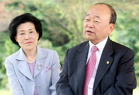 그의 이번 방문에는 중학교(남원중) 후배이자 육영사업의 든든한 조력자인 부인 공정자(孔貞子·69) 남서울대 총장이 동행했다.