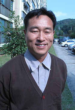 14일 전주 평화동 평화주공아파트 2단지 앞에서 열린 '평화주민과 함께 찾아가는 이동상담소'에서 만난 (사)전북실업자종합지원센터 육이수 소장(40).