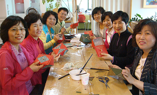 20여 명의 시 공무원들이 빛깔이 고운 전통 한지로 '삼각함' 만들기에 여념이 없었다. '삼각함'은 조선 시대 여성들이 장신구 등을 담아 두던 곳.