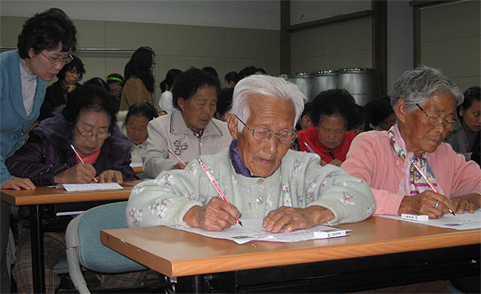 강 할머니는 "평소 글을 읽지 못해 버스를 타거나 생활을 하는 데 불편이 컸는 데 은빛문화반을 통해 글을 배울 수 있어 죽어도 여한이 없다"며 눈물을 글썽거렸다.