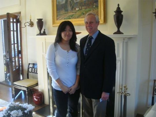듀크대 Richard H. Brodhead 총장과 포즈를 취한 전유진 양. (desk@jjan.kr)