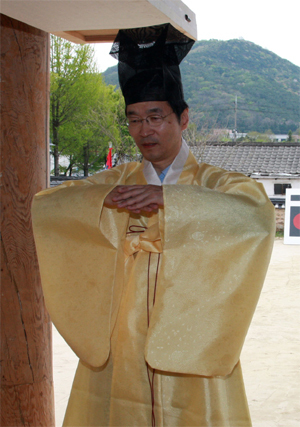 곽노현 서울시 교육감이 지난달 29일 전주 한옥마을 동현에서 '다산으로 본 한국의 정산' 교육을 받으며, 선비의 예절을 익히고 있다. (desk@jjan.kr)