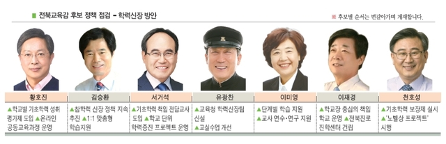 유광찬 후보는 전북교육청 조직 개편을 통해 별도의 학력신장팀을 운영하겠다고 밝혔다. 유 후보는 학생들의 발달 단계에 맞는 최적의 교육시스템 구축이 필요하다고 덧붙였다. 그는 또, 기초학력 책임 지도를 위한 부진아 맞춤형 강사를 확대하고, 교실수업 개선을 통해 학력신장을 지원하겠다고 강조했다. 인공지능 시대에 대비한 개인별 수월성 교육도 지원한다는 계획이다.