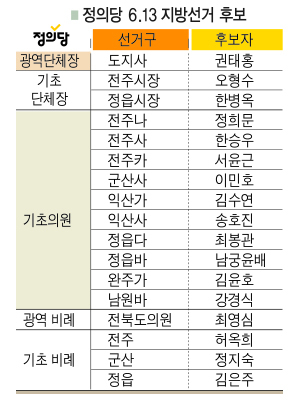 정의당 전북도당은 6·13 지방선거 출마 후보 확정을 위해 온라인투표(18~21일)와 현장투표(22일)를 진행해 이같이 결정했다고 23일 밝혔다.