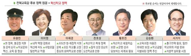 상당한 양적 성장은 이뤘지만 김 교육감이 주창한 학교혁신과 교육개혁 성과에 대한 교육감 입지자들의 온도차는 적지 않다. 혁신학교의 기본 틀은 유지하되, 제도 개선을 통해 역량을 키워야 한다는 주장도 있었지만 혁신학교의 문제점을 조목조목 짚으며 사실상 폐지해야 할 정책으로 꼽기도 했다.