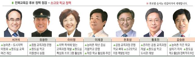 현 정부는 작은 학교 문제에 대한 뚜렷한 정책을 아직 내놓지 않고 있다. 이에 따라 지난 정부에서 추진한 ‘학교 총량제’(적정 규모 학교 육성계획)는 여전히 작은 학교에 불안 요소가 되고 있다. 전북교육감 입지자들은 공동 교육과정 운영, 지역 특색에 맞는 교육 여건 마련, 원도심 교육환경 개선 등을 작은 학교 살리기 정책으로 내놓았다.
