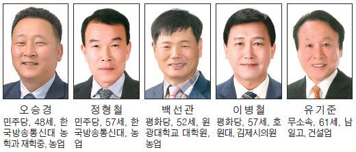김제시의원 라선거구(죽산·부량·성덕·광활·진봉)는 5개면을 지역구로 2명을 선출하며, 민주당 2명을 비롯 평화당 2명, 무소속 1명 등 총 5명이 출사표를 던졌다.