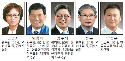 2명을 뽑는 김제시의원 마 선거구(교월·요촌)에서는 민주당 2명(김영자·안동희) 및 평화당 2명(김주택·나병문), 무소속 1명(박성운) 등 총 5명이 출사표를 던지고 각자 자신이 시의회에 입성해야만 지역 발전을 일굴 수 있다며 지지를 호소하고 있다.