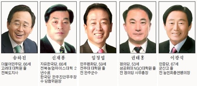 [6·13 지방선거 단체장 판세분석] 전북도지사 - 민주 송하진 재선가도에 야권 4인 추격 양상