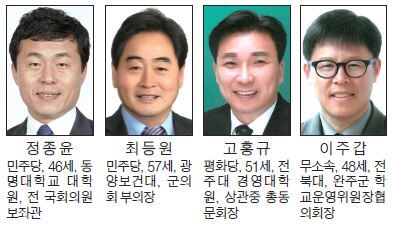 완주 나선거구(소양·구이·상관) 군의원 선거에는 더불어민주당에서 공천한 최등원 예비후보와 정종윤 예비후보, 민주평화당에서 공천장을 받은 고홍규 예비후보, 지난 6대 군의원 선거에서 석패한 무소속 이주갑 예비후보 등 모두 4명이 출사표를 던졌다.