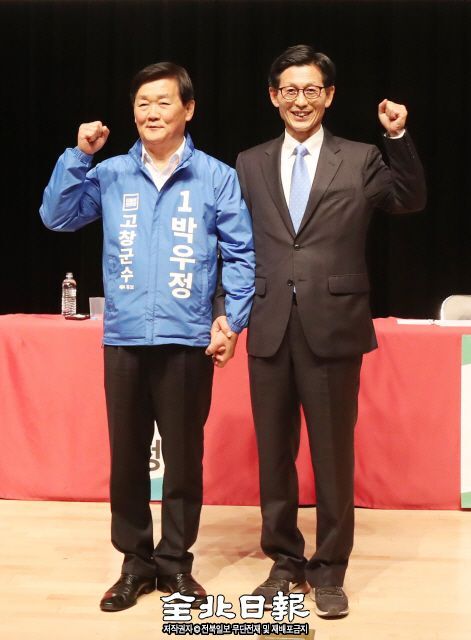 전북일보가 전북CBS와 공동으로 21일 고창 동리국악당에서 개최한 ‘6·13 지방선거 고창군수 후보 초청 토론회’에서 더불어민주당 박우정 군수와 민주평화당 유기상 후보는 고수일반산단 문제를 놓고 책임공방을 펼치며 대립각을 세웠다.