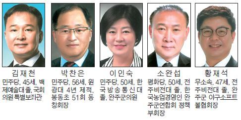봉동출신인 더불어민주당 김재천 예비후보(45)는 봉서초와 완주중 백제에술대를 졸업했으며 사랑의 연탄나눔 완주지부 사무차장 민주당 완주·진안·무주·장수지역위 청년위원장과 국회 안호영 의원 특별보좌관을 맡고 있다. 지역발전 비전으로는 청년 노인 신규 일자리 창출과 문화공유버스 운행 마더센터 설치, 스마트농장 시범단지 조성 등을 제시했다.