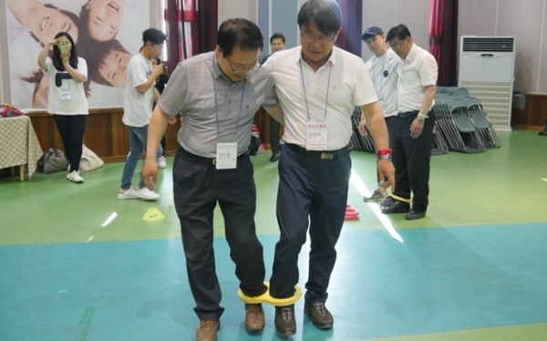 아울러 익산시장 후보들은 이날 2인3각 게임을 통해 서로 어깨동무를 하고 발과 호흡을 맞추는 모습을 연출해 내면서 참석자 모두의 훈훈한 미소를 이끌어 냈다.