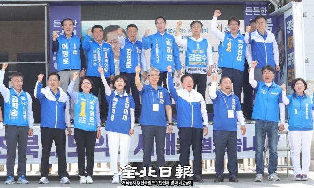 민주당 도당 선거대책위원회는 이날 지방선거 합동 기자회견과 출정식을 하고 승리를 다짐했다. 선대위는 이날 광역과 기초단체장 후보 등이 함께한 전북도의회 기자회견에서 “민주당은 높은 지지율에 자만하지 않고 더 낮고 겸허한 자세로 혁신에 매진하겠다”고 강조했다. 이어 “지금보다 더 낮게, 더 겸하하게, 더 혁신하고, 더 노력하는 민주당이 될 것”이라며 “민주당을 찍어주시는 한 표 한 표는 전북을 대도약시키고, 문재인 정부를 성공시킬 것”이라며 지지를 호소했다.