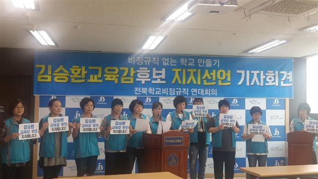 이 단체는 5일 전북교육청에서 기자회견을 열고 “비정규직 없는 학교 만들기를 함께할 적임자로 김승환 후보를 선택했다”고 공개 지지를 선언했다.