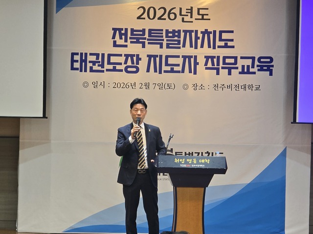 전북특별자치도태권도협회(고봉수 회장)는 지난 7일 전주비전대학교에서 ‘2026년도 전북특별자치도 태권도장 지도자 직무교육’을 실시했다.