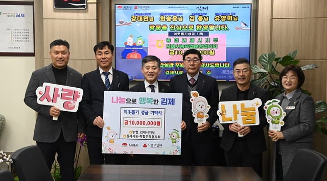 강대연 농협 김제시지부 지부장과 최승운 김제시농·축협운영협의회 회장은 “지역사회와 함께 성장해 온 농협으로서 어려운 이웃을 돕는 일에 책임감을 느끼고 있다”며 “이번 성금이 도움이 필요한 분들에 작은 힘이 되길 바라며, 앞으로도 지역과 함께하는 나눔 활동을 지속해 나가겠다”고 말했다.