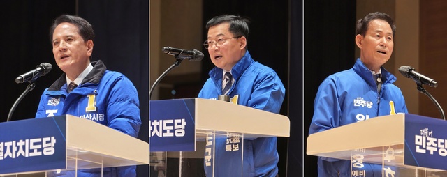 조용식·심보균·최정호 익산시장 예비후보가 28일 합동연설회에서 저마다 익산의 미래를 바꿀 적임자임을 자처하며 지지를 호소했다.